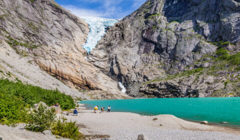 Der Ausflug wird von dem Dorf Olden beginnen. Der Bus führt Sie durch das Tal und an der “ kleinen roten Kirche“ aus den frühen 1900 vorbei. Die Kirche war mal ein Geschenk von einem amerikanischen Sammler norwegischer Antiquitäten. Heute ist es ein Museum. Die Tour führt weiter, entlang des Sees Olden. Hier finden Sie viele Farmen weil dieses Tal sehr fruchtbar ist. Auf dem Weg zum Briksdal, eine Gletscherzunge vom Jostedalsgletscher (das grösste Gletschergebiet auf dem Europäischen Festland), werden Sie viele Wasserfälle entdecken. Nun beginnt ein schöner Wanderweg zum Gletschersee wo der Gletscherarm endet.